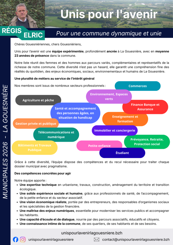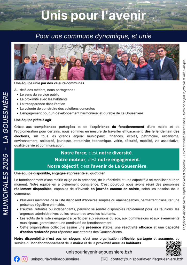 Cette distribution est un moment important pour nous. Elle permet de présenter notre équipe, notre démarche et la vision que nous portons pour La Gouesnière : une commune dynamique, unie et tournée vers l’avenir.
