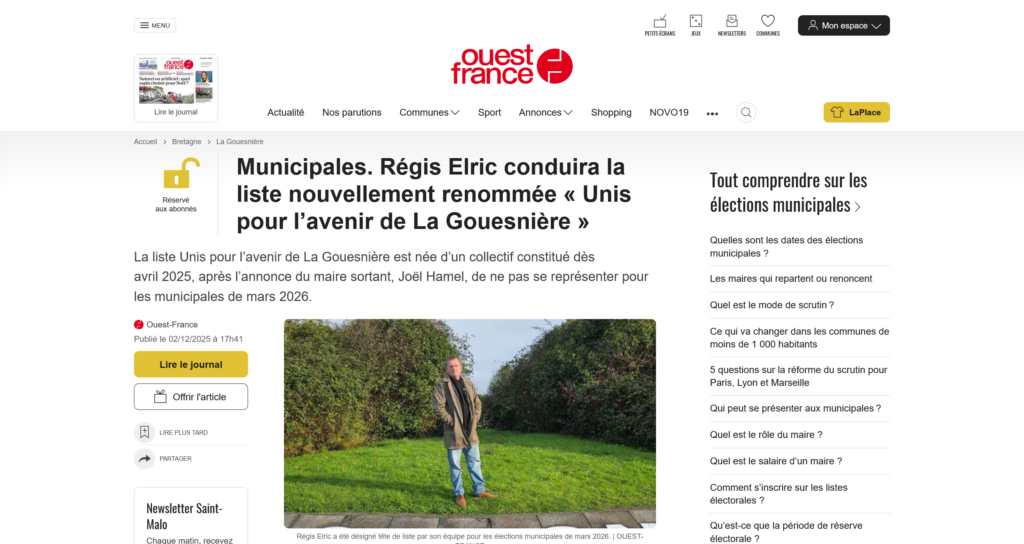 Régis Elric conduira la liste nouvellement renommée « Unis pour l’avenir de La Gouesnière »